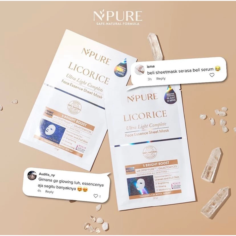 NPURE Licorice Ultra Light Complete Sheet Mask adalah pilihan ideal bagi kamu yang mencari sheet mask pencerah instan masker wajah glowing 15 menit sheet mask essence tinggi licorice untuk kulit kusam serta masker wajah praktis untuk tampilan cerah seketika