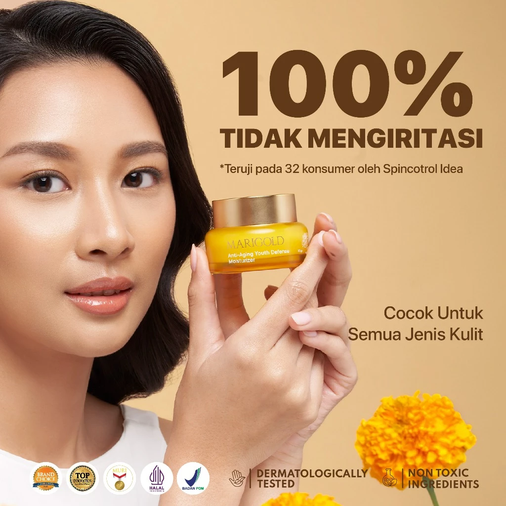 NPURE Marigold Anti Aging Youth Defense Moisturizer adalah pilihan terbaik untuk kamu yang membutuhkan pelembap anti aging yang aman untuk kulit sensitif mengurangi kerutan menyamarkan flek hitam serta menjaga kelembapan dan elastisitas kulit secara menyeluruh