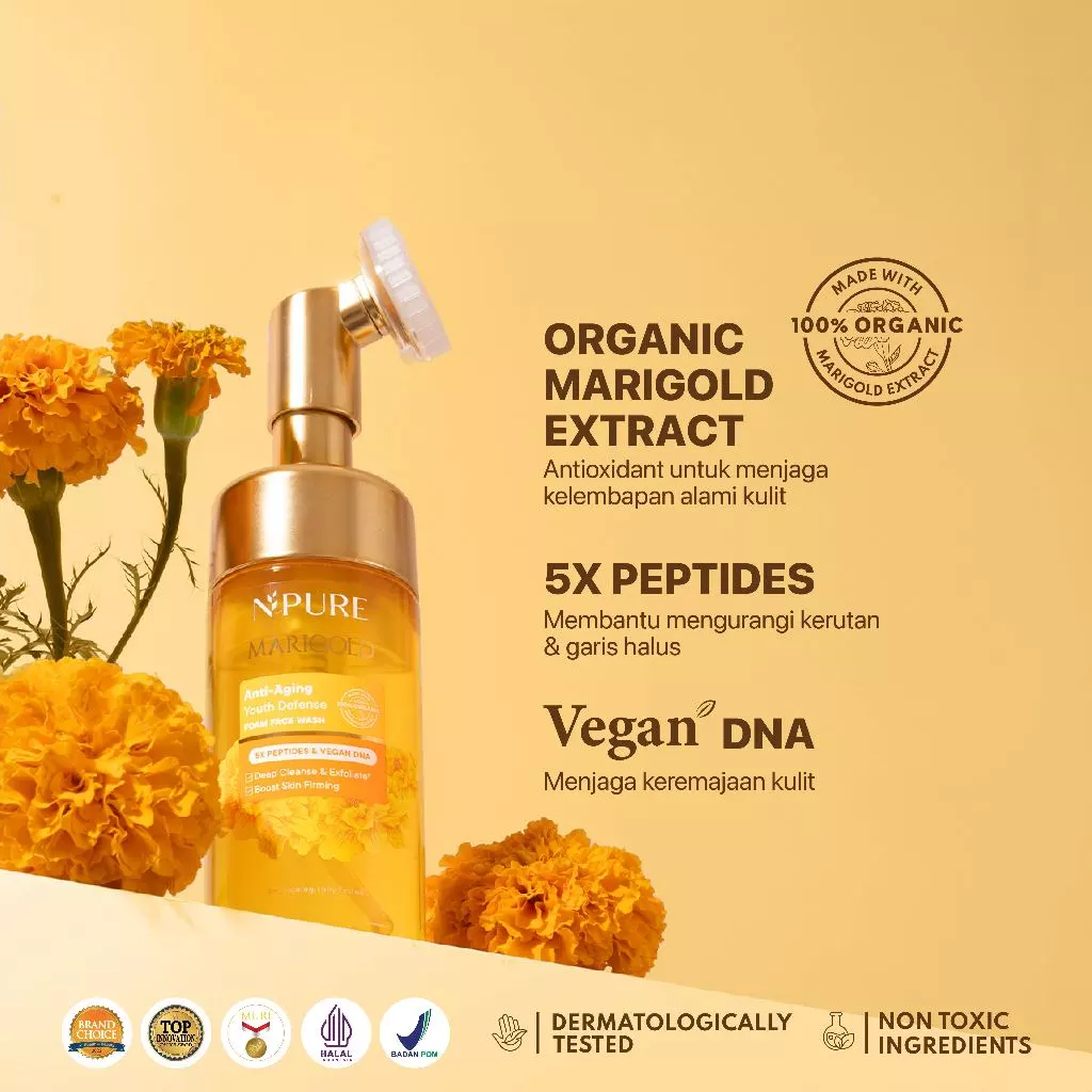 NPURE Marigold Facial Wash Anti Aging Non SLS untuk Kulit Awet Muda