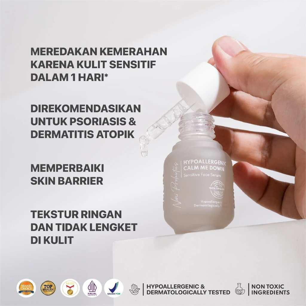 Serum ini teruji efektif membantu meredakan kemerahan akibat kulit sensitif hanya dalam satu hari serta menjaga keseimbangan microbiome kulit agar tampak lebih sehat dan nyaman